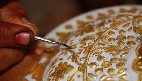Real stone pieces engraved into the marble to create colorful floral or spiritual designs.